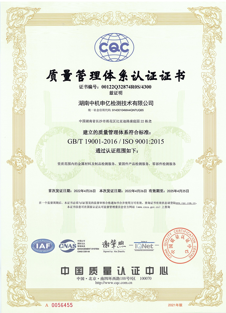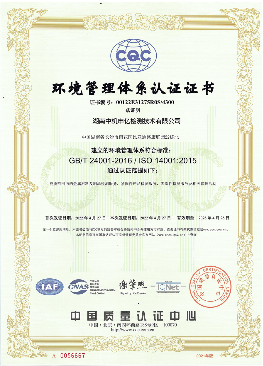 - 喜訊!中機(jī)申億檢測(cè)公司榮獲中國(guó)合格評(píng)定國(guó)家認(rèn)可委員會(huì)(CNAS)認(rèn)可