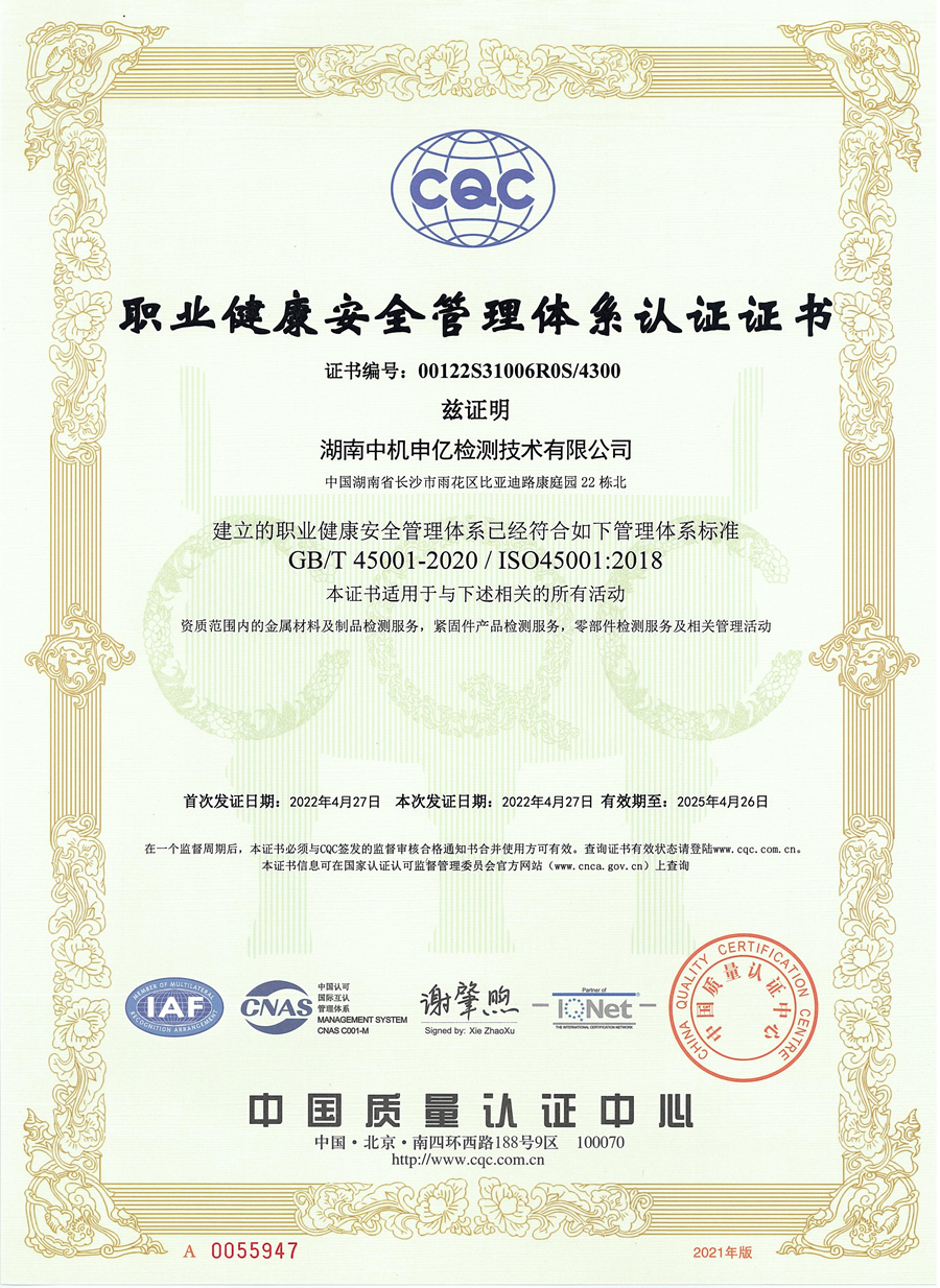 近日湖南中機(jī)申億檢測(cè)技術(shù)有限公司順利通過(guò)了ISO 9001質(zhì)量管理體系、ISO 14001環(huán)境管理體系及ISO45001職業(yè)健康安全管理體系認(rèn)證并獲得了認(rèn)證證書(shū)。這標(biāo)志著公司已步入規(guī)范化、標(biāo)準(zhǔn)化、科學(xué)化的現(xiàn)代化企業(yè)管理軌道,表明公司在質(zhì)量、環(huán)境、職業(yè)健康安全體系管理上已達(dá)到了國(guó)際標(biāo)準(zhǔn),公司能持續(xù)穩(wěn)定地向顧客提供預(yù)期和滿意的服務(wù),同時(shí)意味著公司各項(xiàng)管理工作以及品牌文化發(fā)展邁上了一個(gè)新的臺(tái)階。